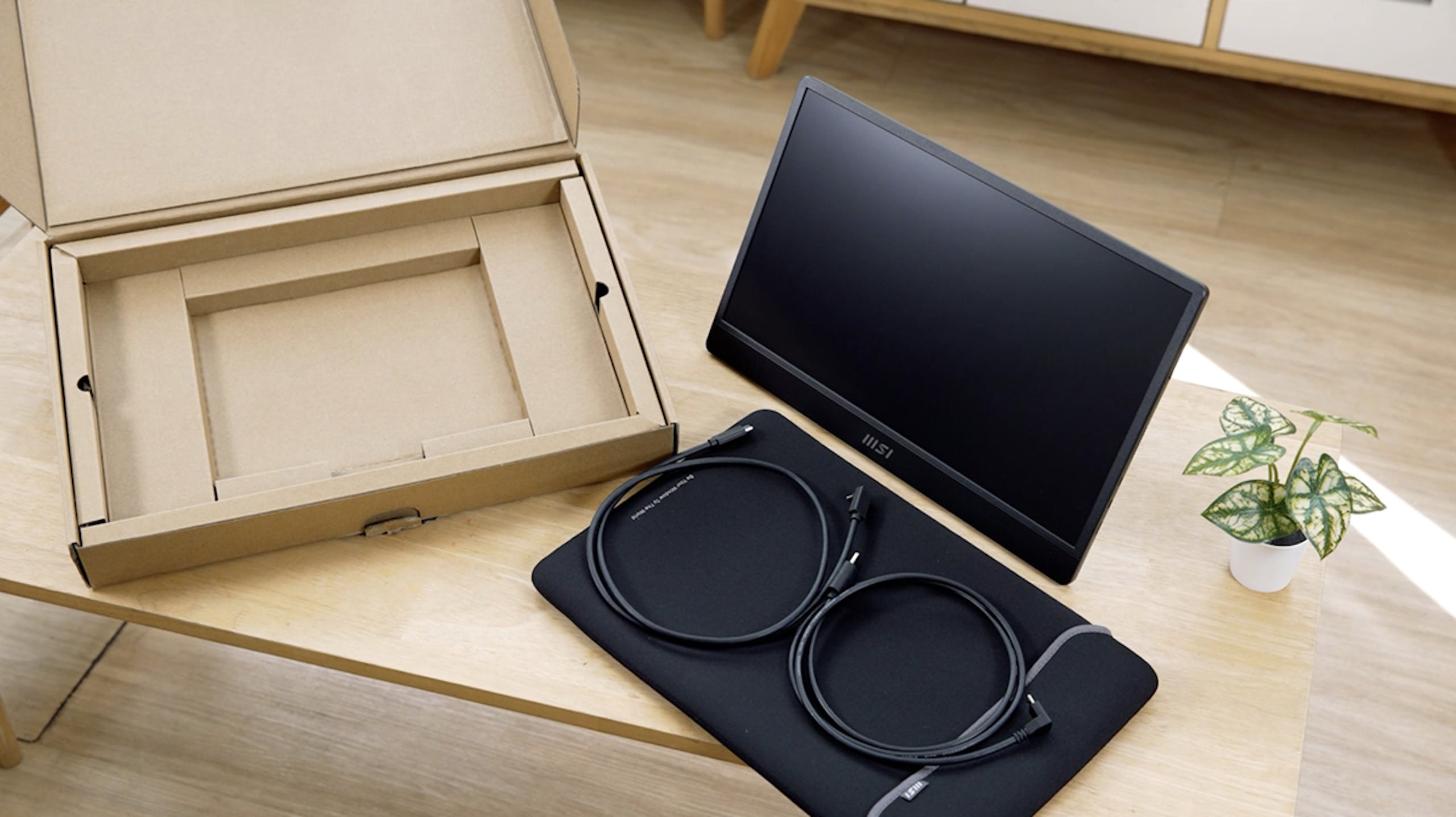MSI PRO MP161E2搭载15.6吋FullHD分辨率防眩光IPS面板,机身脚架设计进行延长设计,使垂直与水平使用有更多的可用角度,并支持1/4“标准三脚架孔,能连接各式主流的三脚架提供多元的观看模式; 另外盒装线材采用90度转向的水平线材设计,使连接安装的视觉更为美观。