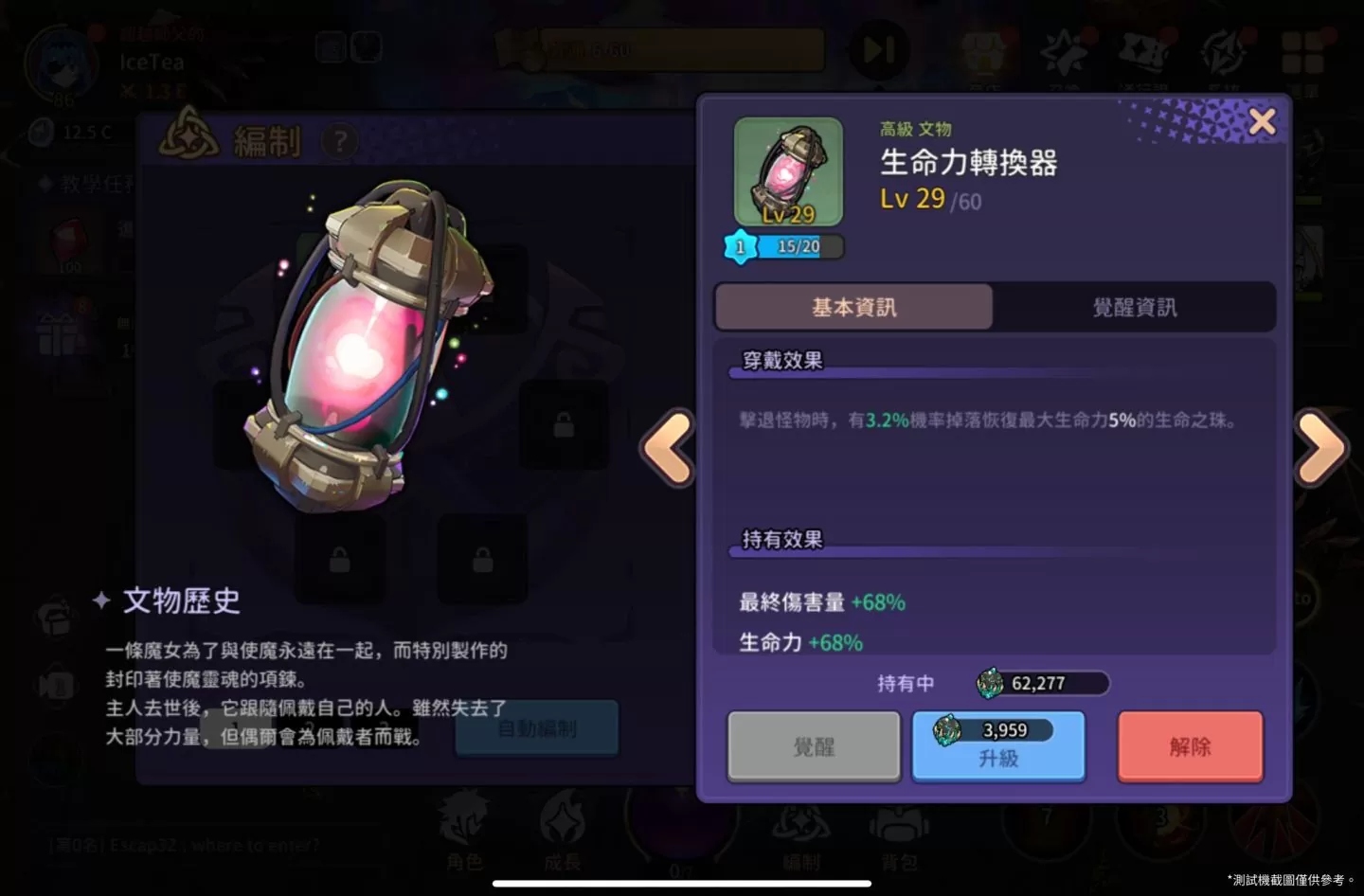 当游戏通关一定的章节后,将开启角色的休憩所,玩家可以在休憩所中使用炼金术打造灵魂封印箱,可获得不同等级的装备与饰品。 玩家也能通过装饰文物来获得额外的穿戴效果,并且提升角色的伤害量与生命力!