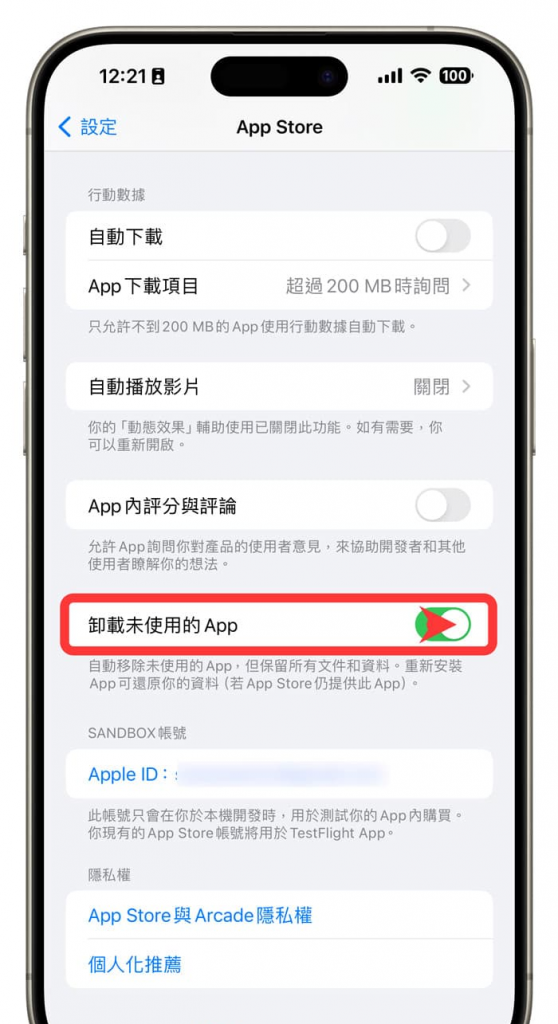 只要打开 iPhone 内置「设置」App,选择「App Store」后,将「预载未使用的 App」开启,就可以让系统自动管理和移除 App,超适合懒人。