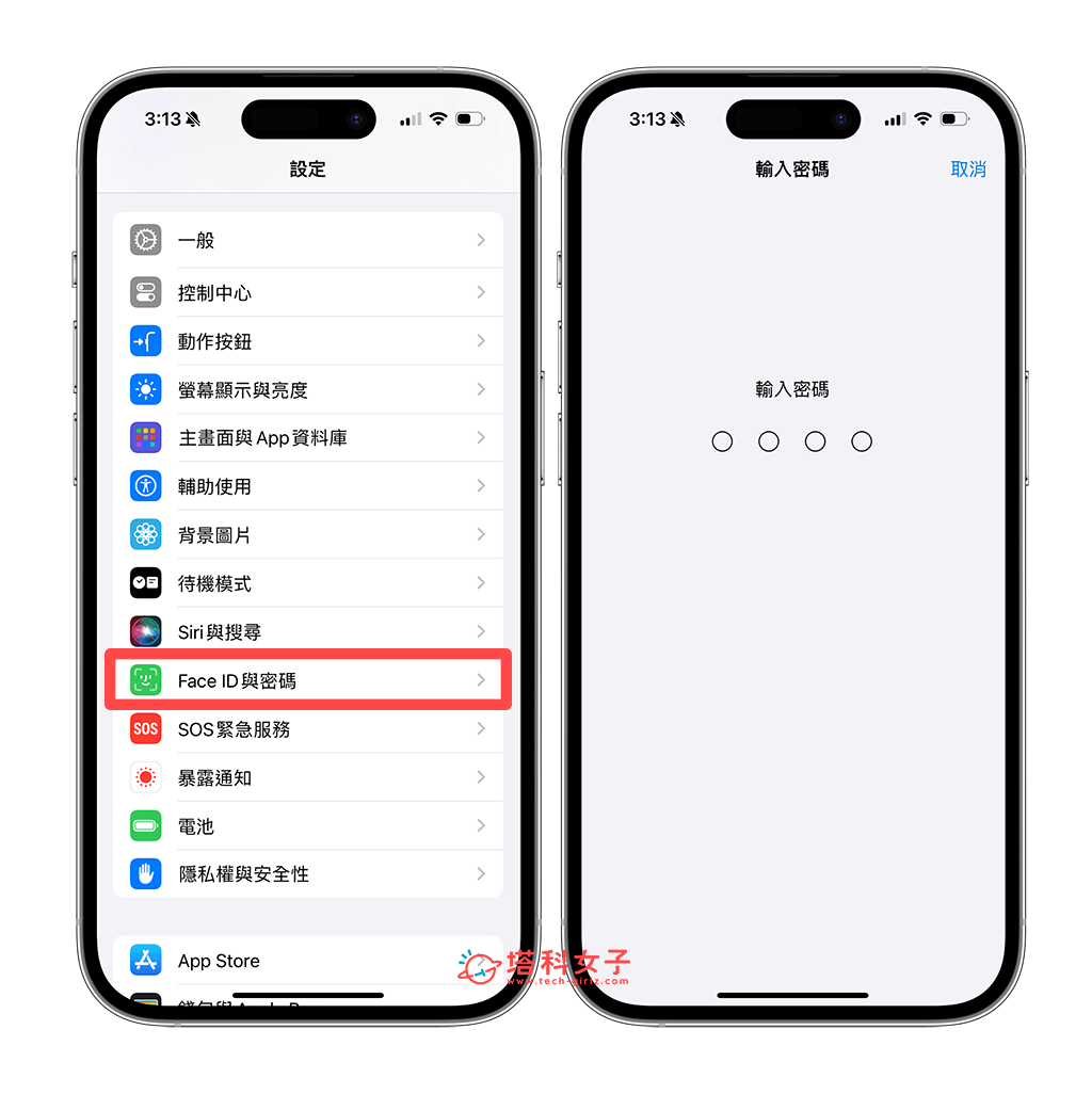 - 往下滑,点击「Face ID 和密码」 (或 Touch ID 和密码)。