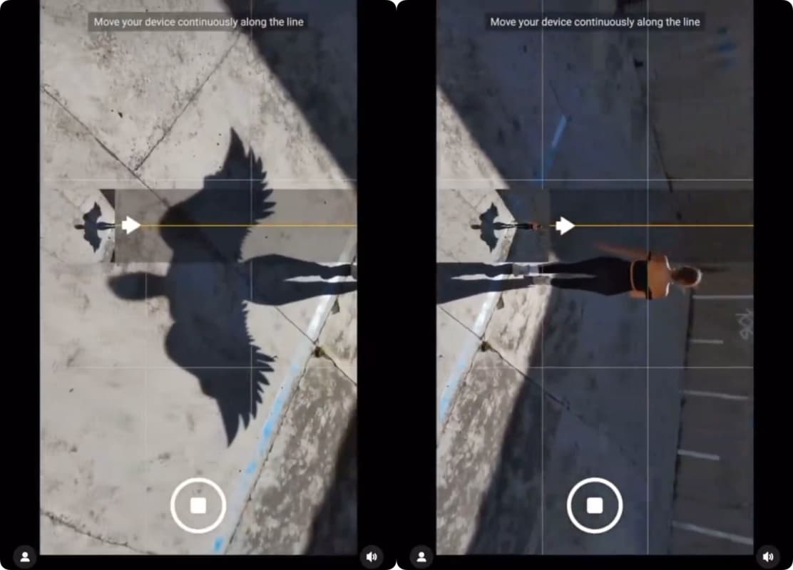 - 人物走到中央位置,再将全景画面往中央滑动(画面会自动合成)。