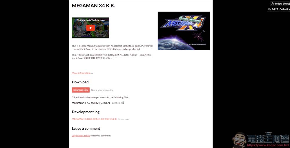 有没有想过,如果在游戏中不使用主角进行游戏,而是改成里面的杂兵来玩游戏,那么感觉会如何? 这款由粉丝自制的 Mega Man X4 fan game with Knot Beret ( 作者 : 树画祭 Shu-ha-ji),就可以将洛克人X4 里的 Knot Beret (游戏中的杂兵) 当成主角来使用。 而且游戏画面、音乐、音效都完整地原汁原味呈现,可说是一款还原度很高的粉丝自制游戏作品。