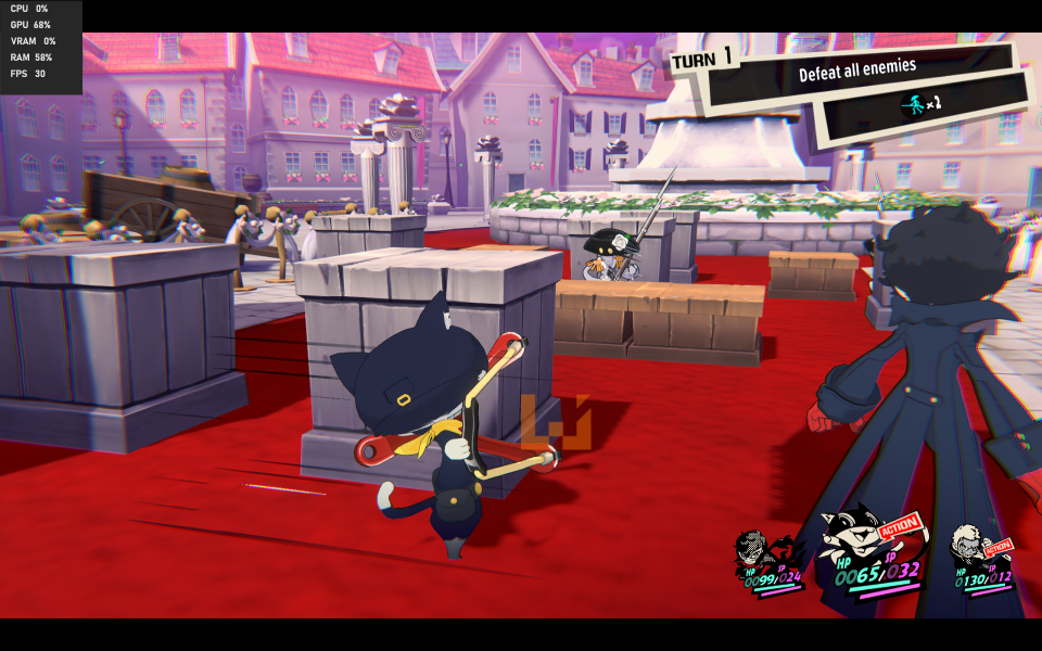 最低设置下 游玩《女神异闻录5 战略版》,在大多时候游戏能够以30FPS运行,但在移动角色时会出现些许的卡顿,但是
