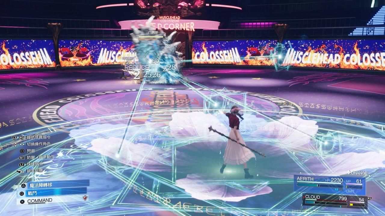 为Aerith装上在战斗模拟器中取得的「烈焰&寒气」和「雷霆&疾风」的话,两个魔晶石插槽就能有齐4属攻击; 但是这两颗魔晶石升级所需AP很高,如果没特意练的话可能到游戏中期都仍然只得1星,未能使出高一级的中级魔法。 另外是Aerith始终防御方面较弱,操作Aerith又被敌人追击时要多加善用「变换防御」,可大大减少受到的伤害。