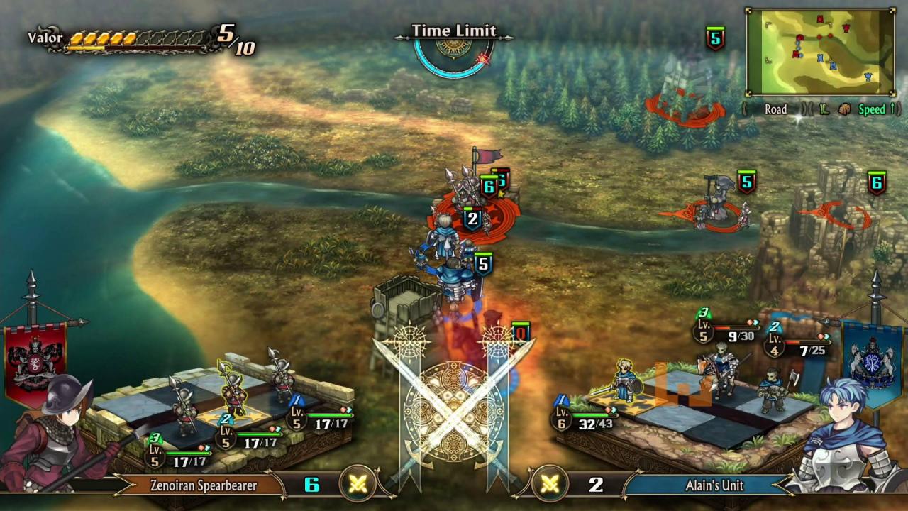 玩家将在游戏最初期时,获得1点「Valor」点数和一个主要的指挥中心。「Valor」点数可以通过解放敌军控制的区域或是击败敌军获得。玩家可以指定最多6名角色以小队的方式行动,并被分为前排与后排,部署在3×2的网格中。部队的阵型在战斗中相当重要,但简而言之,坦克型角色占据前排,而支援型角色和进攻型角色则留在后排,这样的布局会对战斗更加有利。