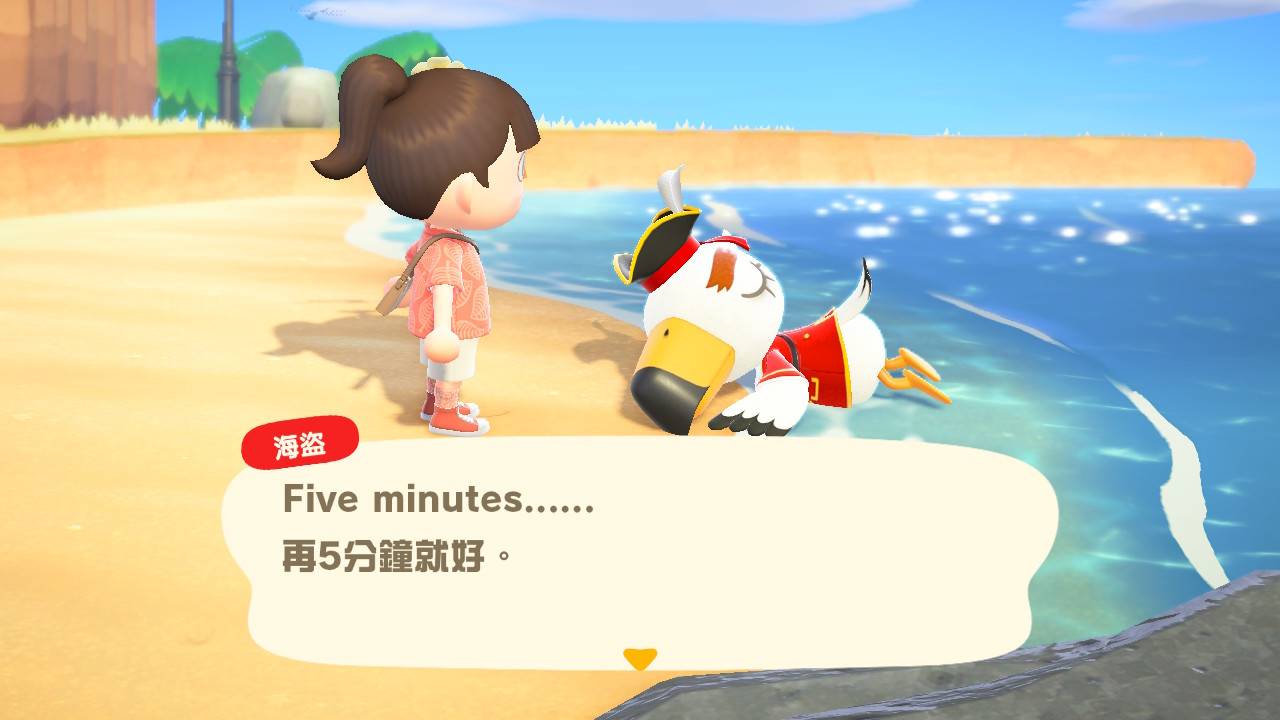 与吕游的情况相似,你有可能在沙滩找到另一位遭遇船难的人员,他是一名海盗。 协助海盗找到掉在海底的通讯装置,就可以得到谢礼,而且《集合啦! 动物森友会》细节毫不马虎,超多令人想要收藏的「海盗系列」限定商品,完成简单任务即可获得!