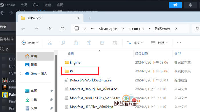 步骤 5 :接着把我们刚刚备份复制出来的存档纪录贴回来刚刚备份的路径文件夹路径「PalServer」→「Pal」→「Saved」→「SaveGames」。