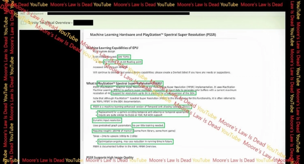 据视频透露,PS5 Pro即将推出PlayStation Spectral Super Resolution(PSSR)功能,能将游戏画面稳定提升至4K 60Hz。 新一代PlayStation 5 Pro将选取由台积电制造的AMD半定制SoC,其GPU性能相较PS5将提升45%,并搭载更快的20Gbps GDDR6 RAM。 此外,新SoC还内置了一个RDNA 4 RT引擎,预计光线追踪性能将大幅提高2-3倍。 同时,新 SoC 还具备机器学习(ML)的自定义架构,而 PSSR 技术同样也采用了该架构。