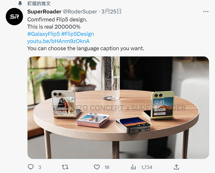 先前就曾有传言指出,Galaxy Z Flip5将会采用更大的封面屏幕,不过如何渲染却是没有详细的定见,甚至还出现过「外双萤幕」的奇葩设计,而根据外媒Sammobile引述爆料者SuperRoader的贴文可以看到更为详尽的Galaxy Z Flip5封面屏幕设计图样,而且爆料者也自述这个设计是 「200000% 真实」。