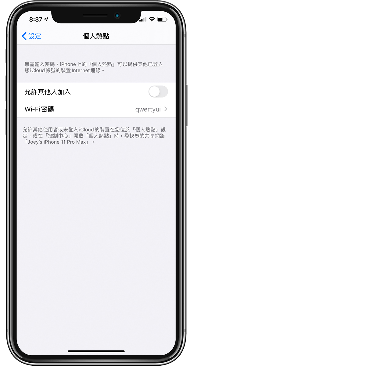 这是最简单的方法,首先,先把 iPhone 的热点分享功能关闭: