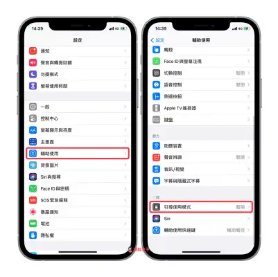 这功能预设是关闭的,因此我们要先将它启用,按照以下路径点选:「设置」 >「辅助使用」>「引导使用模式」