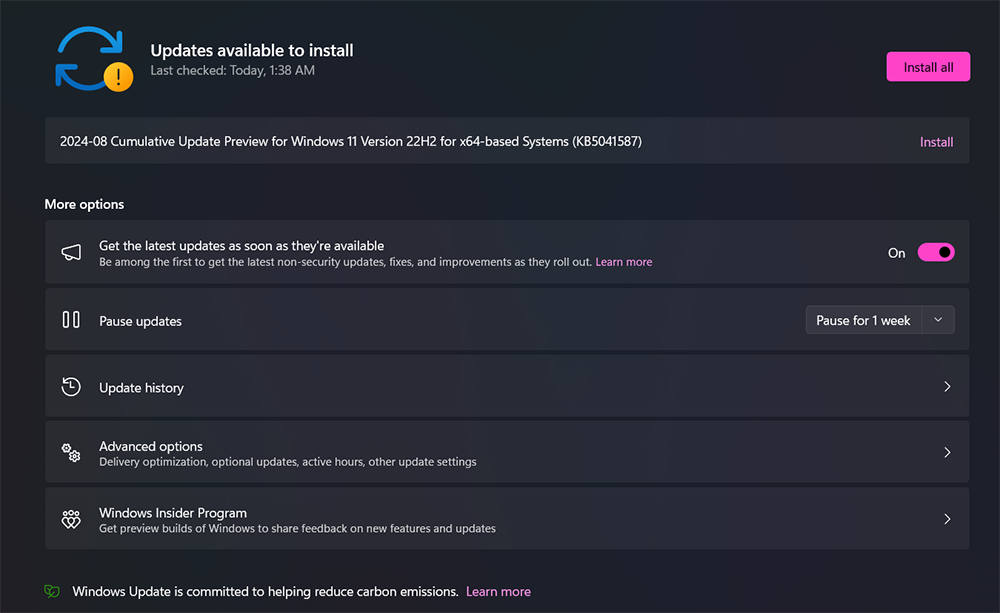 我们想让您知道,Windows 11 24H2 中的分支预测优化现在已被移回到Windows 11 23H2。 用户需要在「Windows 更新 > 高级选项 > 可选更新」中,寻找KB5041587。 我们预计安装KB5041587后,23H2和24H2的性能提升会非常相似。