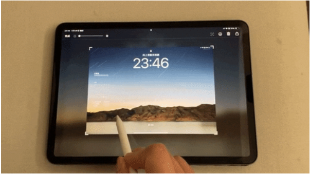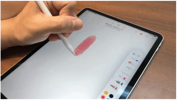 这样你就可以利用Apple Pencil 2 从iPad Pro、iPad Air 左下方屏幕外的地方,用Apple Pencil 2 往内划,就可以快速屏幕截图。