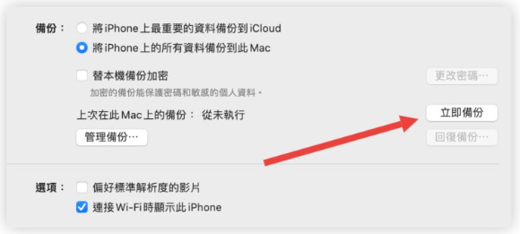 下面这边我都会以Finder 来示范,iTunes 的备份方式其实也差不多。