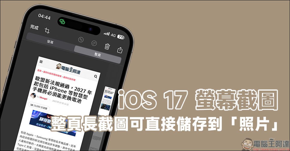 以前 iPhone 要截图时,除了一张张的将网页的每个画面分别存取下来,另一种方式就是选择「整页」进行截图。 然而,之前 iOS 内置的截图功能只能储存为 PDF 文件,若用户想要储存长截图的图片只能选择第三方的 App 进行。 不过,最近随着iOS 17公测版开放,iOS 17屏幕截图体验也更好了,终于能将整夜储存成图档啰!