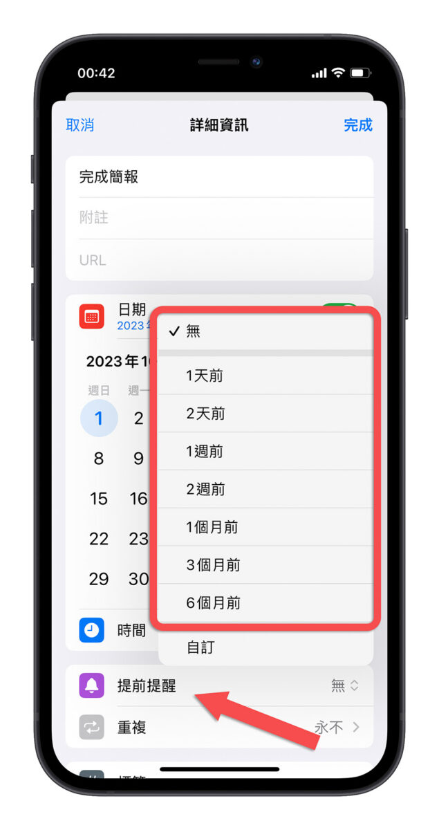 老实说我还是现在才注意到,原来提醒事项这个 App 的提醒项目原本是不能设置提早提醒的时间….