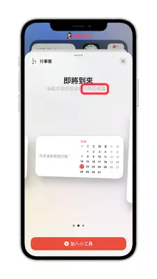 但很可惜的是,这功能在 iOS 14 就被取消了,即使我们可以新增「行事曆内的即将到来小工具」到 iPhone 桌面上,它也不会显示闹钟,只会显示行程与会议。
