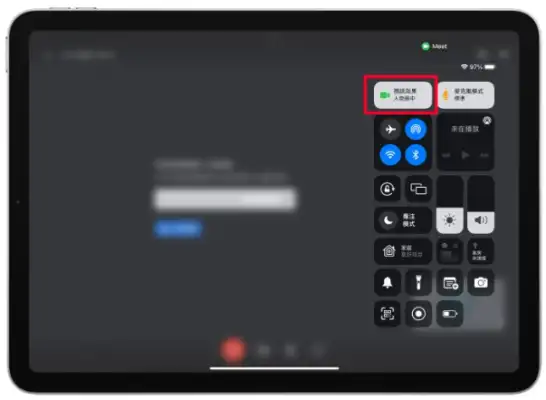 使用iPad 进行视频线上课程、会议时,从画面的右上角下拉出控制中心,就能看到最上方有一个「视频效果」的选项。如果下拉控制中心没有看到视频效果选项的话代表你手上拿的iPad 机型不支持人物居中功能。