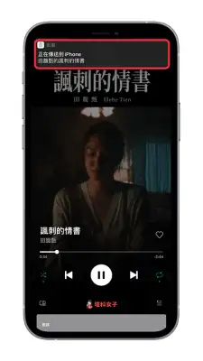 iPhone 上就会出现一个「正在发送到 HomePod」的信息,接着 HomePod 就会接力播放音乐了。