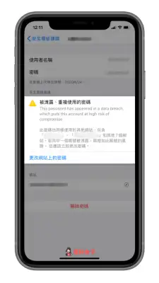 iOS14 的这项功能很贴心,能让使用者知道自己的密码是否可能已遭外洩,这样我们就能进一步採取动作,例如修改密码或者以后不要再使用同一组密码。