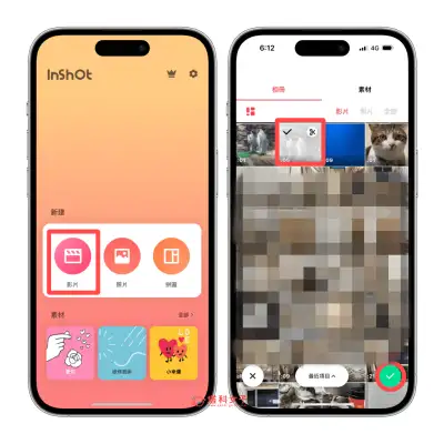 以下详细教大家如何使用 InShot App 来制作 iPhone 视频倒放效果:前往 App Store 免费下载 InShot 视频 App。开启 InShot App,点选「视频」,选择你想的该部 iPhone 视频并打勾。