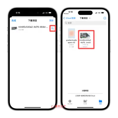 按一下该视频右边的「查找」,它就会替我们开启视频储存位置,会储存在内置的「文件 app」里,请直接打开该视频。