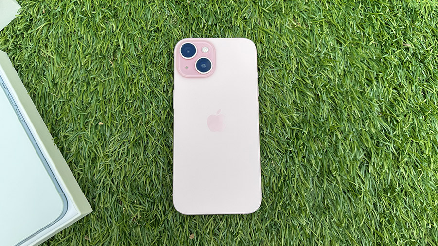 这次评测的 iPhone 15 有粉红色与蓝色,当打开盒子的那一刹那,我与在场的三位同事一致发出了「哇!好白喔」的惊叹声。