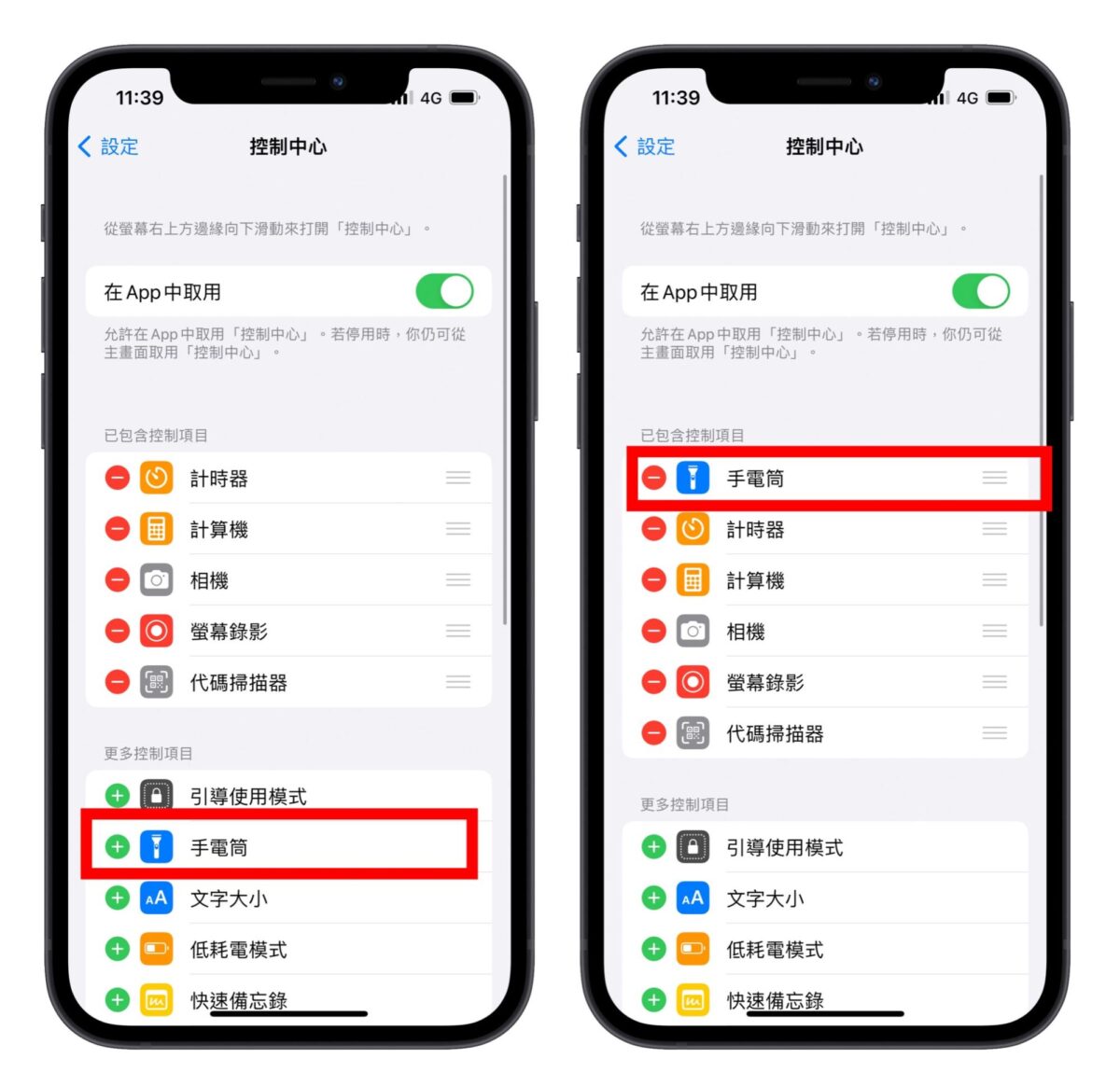 首先先到设置里的控制中心,将 iPhone 手电筒加入控制项目。 默认都会帮你加入可以直接使用,但建议你可以在设置里的控制中心找到「已包含控制项目」,如果看到手电筒有在列表里,就代表已经配置完成,可以使用手电筒啰!