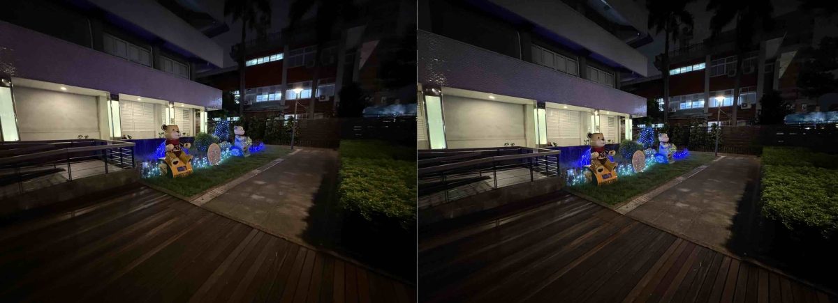 望远镜头只要光给的够多夜间成像还是蛮不错的,强光都有压下来、画面给人的感觉也不会太锐利;相反的,一但光线不够,系统就不会切换成望远镜头拍摄,而是使用主镜头裁切 5 倍,画质会非常糟糕。