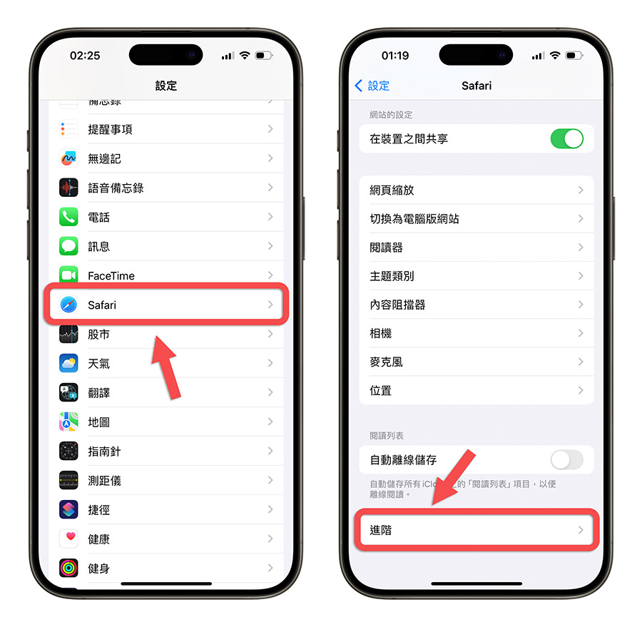 只要你是 iOS 17 以后的使用者,可以开启 iPhone 设置的 Safari 项目,并点选「进阶」功能。