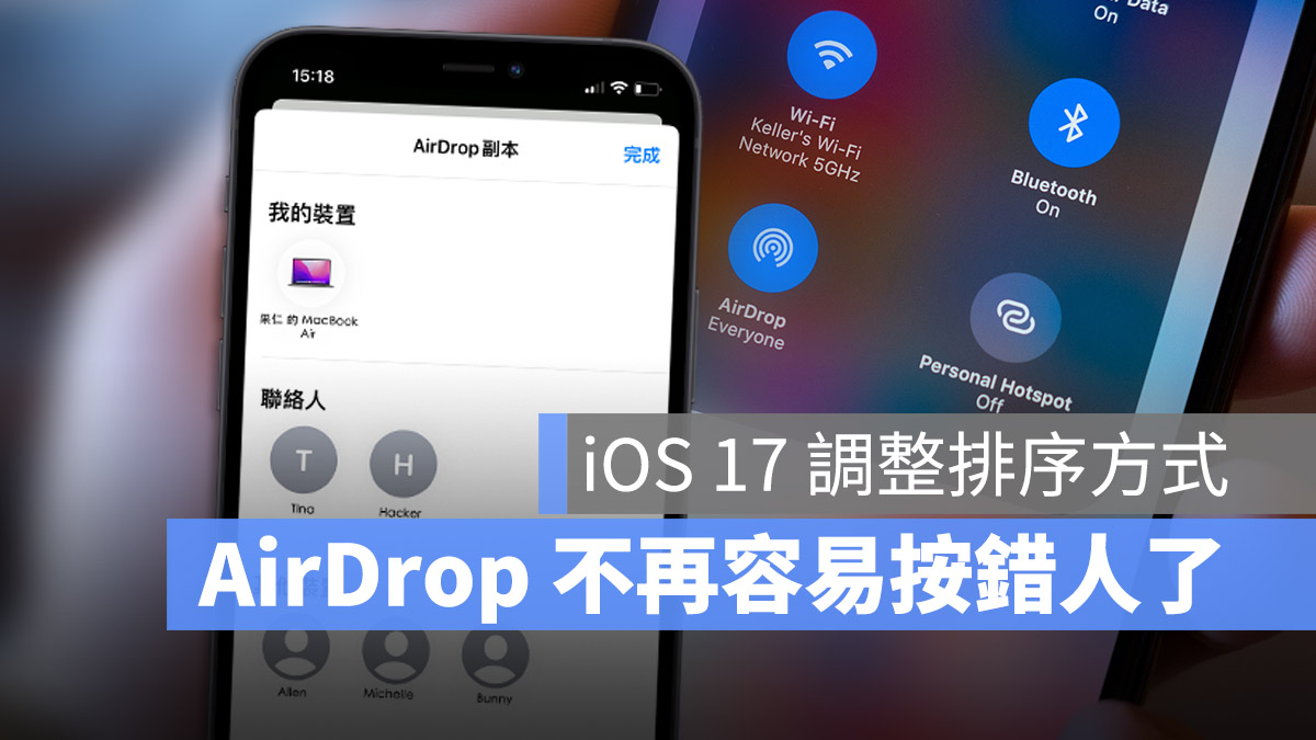 过去我们在 iPhone、iPad 上面传 AirDrop 的时候,常常会因为 iPhone 突然又扫描到某人的设备以后,导致原本的排序又不同了。因为在iOS 17以前的AirDrop接口是按照名称来排序,中文名称先显示,然后才是英文A到Z。