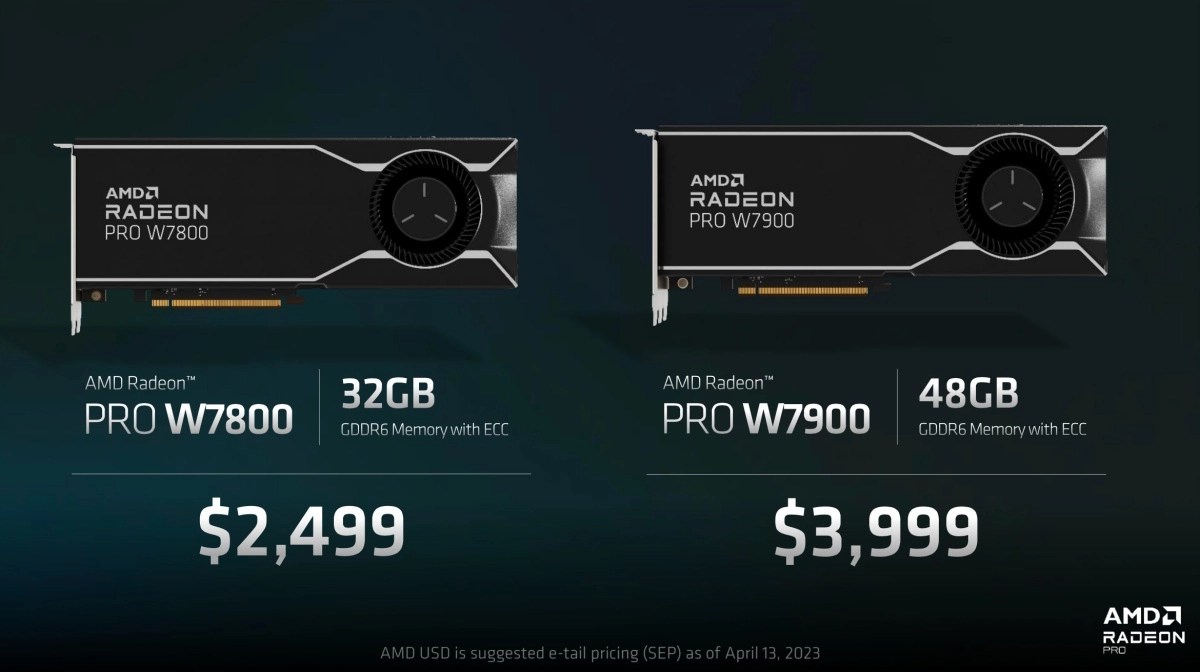 而建议售价方面,Radeon Pro W7900将以3999美元价格销售,Radeon Pro W7800则以2499美元销售,两者预计在今年第二季推出。