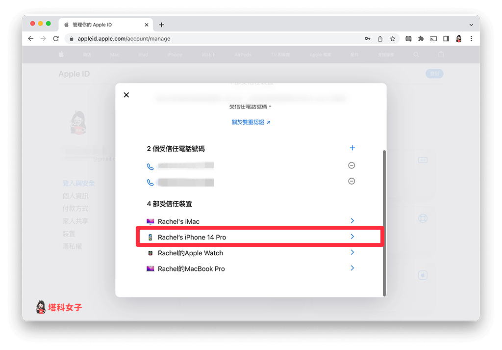 6. 在 Apple ID 网页版查询 iPhone IMEI 号码