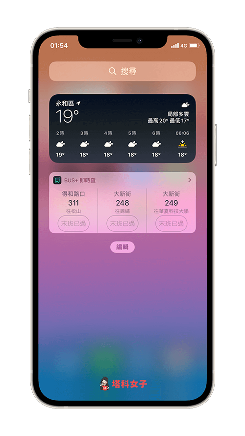 一般我们会开启公车 App 来查看,但其实我们可以将常用的公车路线放在 iPhone 小工具 (Widget) 页面,这样只要往左滑就可以快速查看公车到站时间,不用开启 App。
