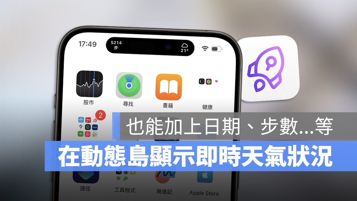 通过上面教的方法,搭配《Lock Launcher》这款 App 启动「实时显示」功能,就可以在 iPhone 的动态岛上随时显示天气资讯,甚至是日期、星期几、萤幕更新率、健康纪录….等不同的资讯。
