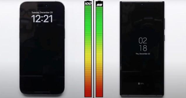 反而是在关闭永远显示的纯待机状况下,iPhone 维持着100% 的电量,Samsung 的Galaxy S22 Ultra 却消耗了5% 的电量。