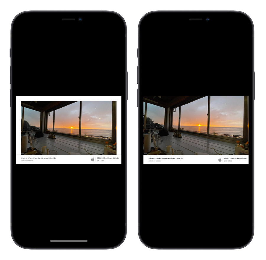 上述步骤都做完以后,就可以检视加框以后的 iPhone 照片,下面则是包含了你所输入的相机参数与拍摄地点等资讯。