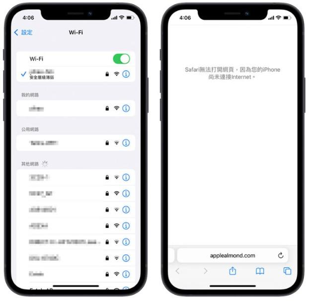 甚至很多时候我们看到iPhone 明明就有连接Wi-Fi 或是4G、5G,但这不表示连接就正常,最好是开启Safari 并实际浏览一个新的网页,看看能不能成功开启,才可以判断连接是否正常。