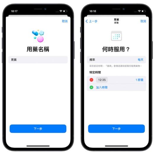 你可以在「健康」App 中,设置长辈的用药资讯,点选「加入用药」的功能,并且输入药品的名称、选择药品的形式、每一次用药的药量,最重要的就是用药的时间。