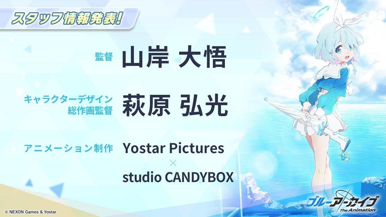官方在2.5周年纪念日释出《蔚蓝文件 The Animation》制作团队以及彩奈和砂狼白子的设置图。 动画制作则由 Yostar Pictures × studio CANDYBOX 负责操刀。
