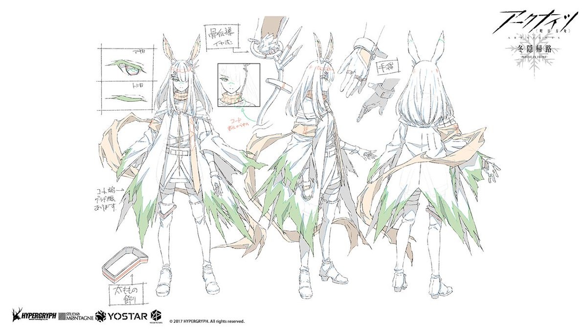 同时于本次「冬隐归路」出现的角色霜星(CV.高垣彩阳),官方释出了角色设计彩图与线稿插图。