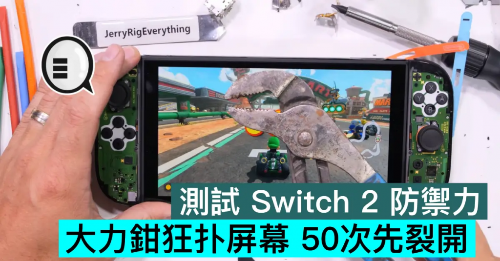 视频还引入了对 Switch 2 屏幕耐用性的测试。 开始前他移除了屏幕表面的一层保护膜。 任天堂表示,这层膜的作用类似于现代汽车的层压玻璃技术,旨在防止屏幕破裂时碎片飞溅伤及用户。 在重新组装主机时,Zack 没有装回这层保护膜。 随后,他使用一把沉重的管钳对裸露的屏幕进行了猛烈而持续的敲击。 超过50次的敲击后,屏幕才出现碎片。 虽然屏幕破裂后一度黑屏,但通过简单的系统重启,主机竟然仍能正常运行游戏,只是此时显示屏已严重损坏。 对此,该主持人表示,若用户正常使用该装置,基本不会出现太大问题。
