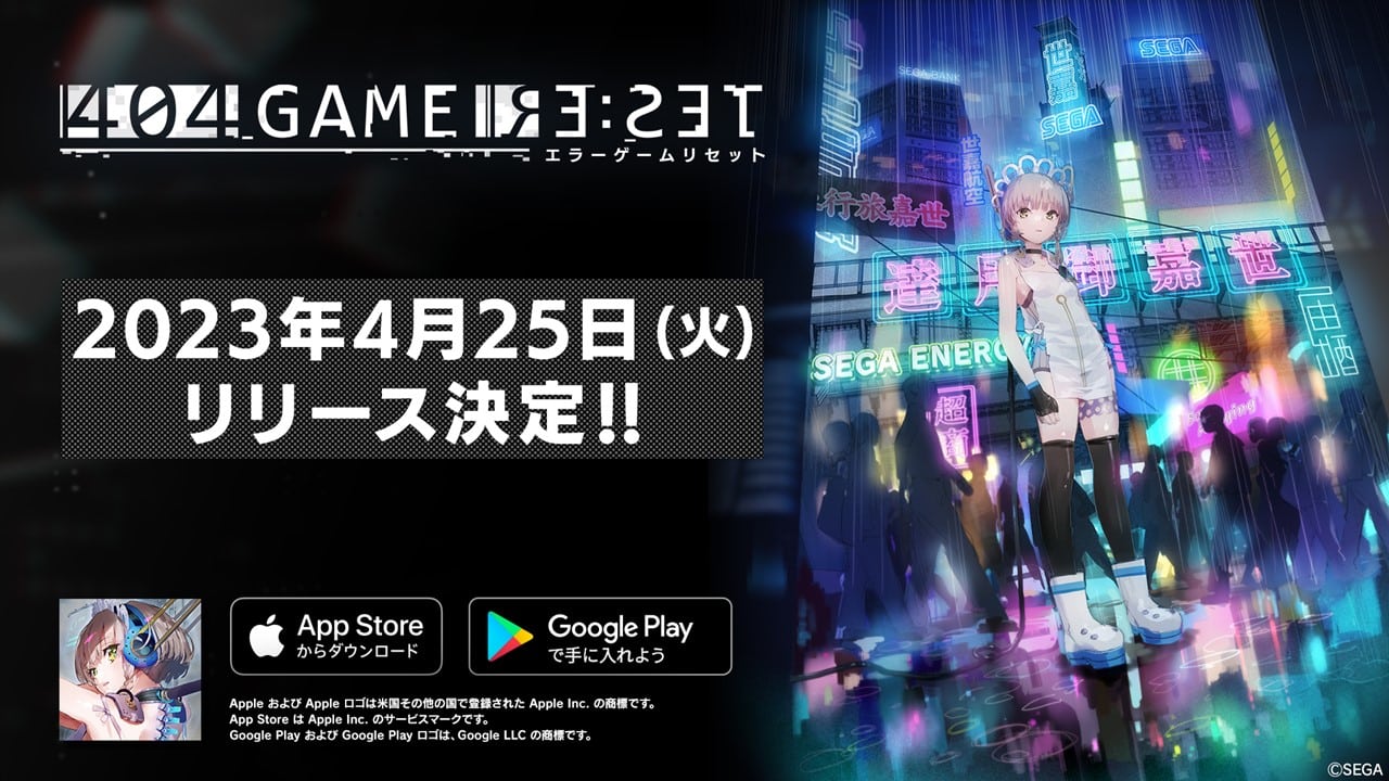 SEGA发表新作手机游戏《404 GAME RE:SET Error Game Reset》将会在2023年4月25日开始营运,并且会在本(17)日公开前传故事,让玩家可以抢先理解本作的世界观以及战斗系统。 本作的制作阵容邀请到了横尾太郎担任创意总监、Yūgen 担任人物设置。