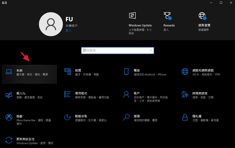首先进入 Windows 设置页。
