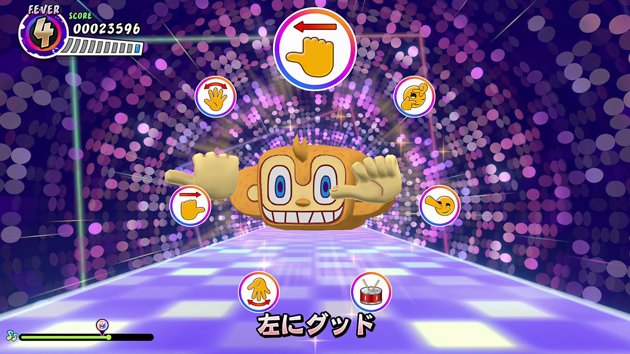 除了配合节奏挥舞 Joy-Con 外,还有「连按」和配合图标摆动 Joy-Con 的「拖曳」,以及需要依照指示舞动或做出姿势的「姿势图标」。