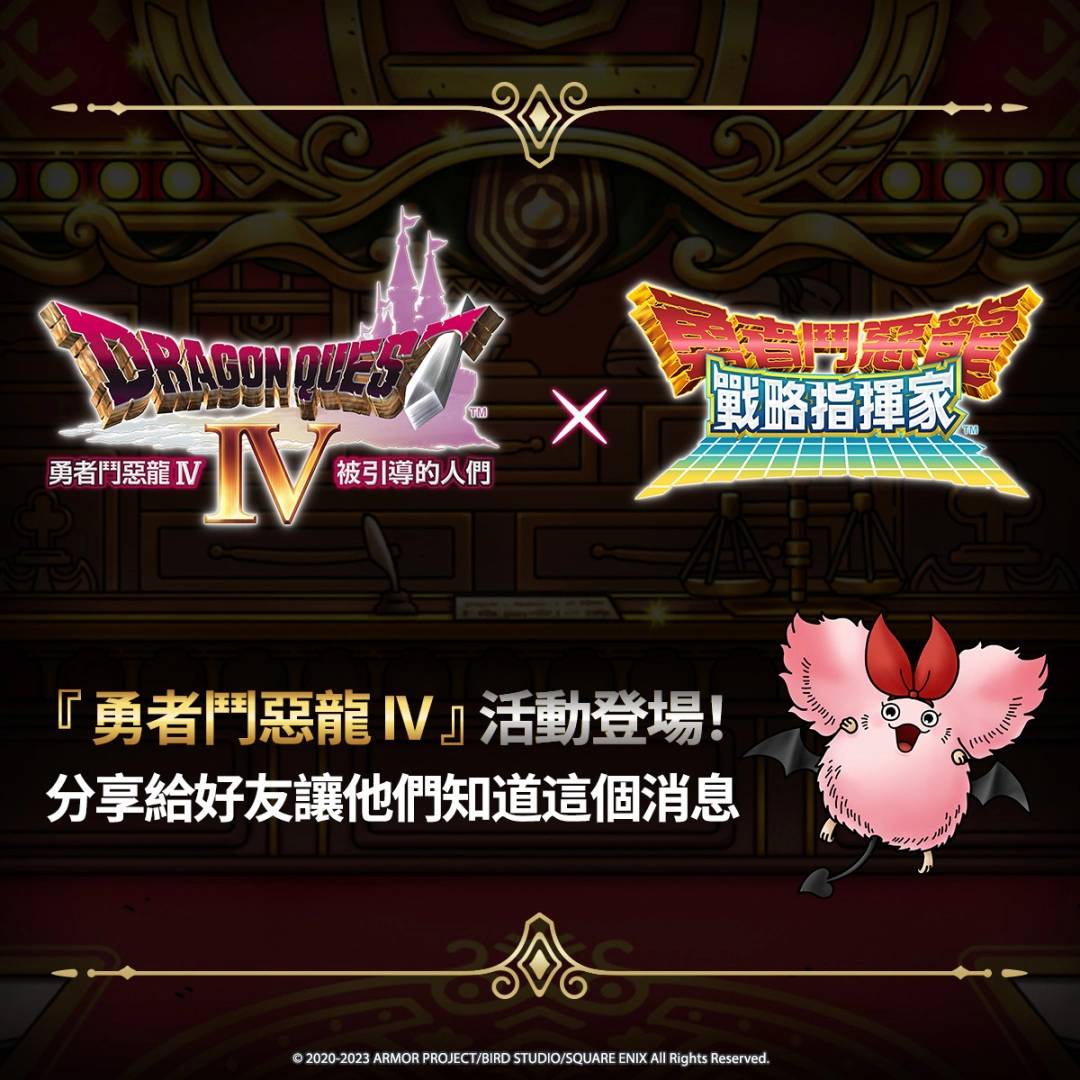 接下来《勇者斗恶龙 战略指挥家》国际版粉丝团预计将会举办一系列《勇者斗恶龙 IV》连动活动的社群活动,奖品不仅有《勇者斗恶龙 战略指挥家》的可爱周边,更有征召券、角色培育素材等着各位大师,现在就先按赞并且追踪粉丝团,活动开始就可以第一时间参加!