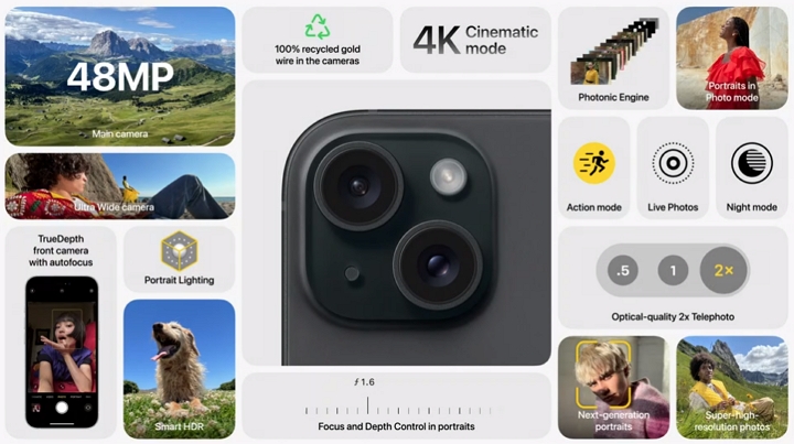 今年的iPhone 15及iPhone 15 Plus虽然维持双镜头设计,但主镜头升级为iPhone 14 Pro的4,800万像素相机。