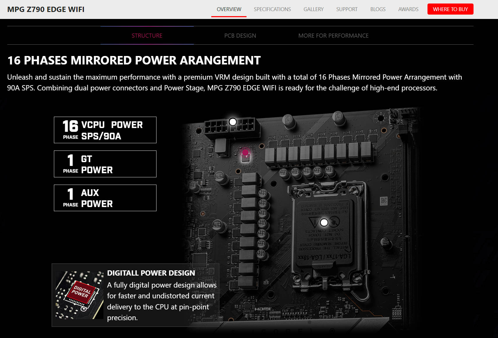 如果按照 MPG MAG PRO 的定位排列,在微星的定位中,MPG Z790 CARBON WIFI > MPG Z790 EDGE WIFI > MSI PRO Z790 A,也就是 DIRECT > MIRRORED (额外芯片倍相器) >DRPS (并联)。 可是 GODLIKE/ ACE 的 DRPS (并联) 好像又排在 DIRECT 之上,这就有点奇怪了。 网络上探讨方案好坏的论点大概有以下这些: