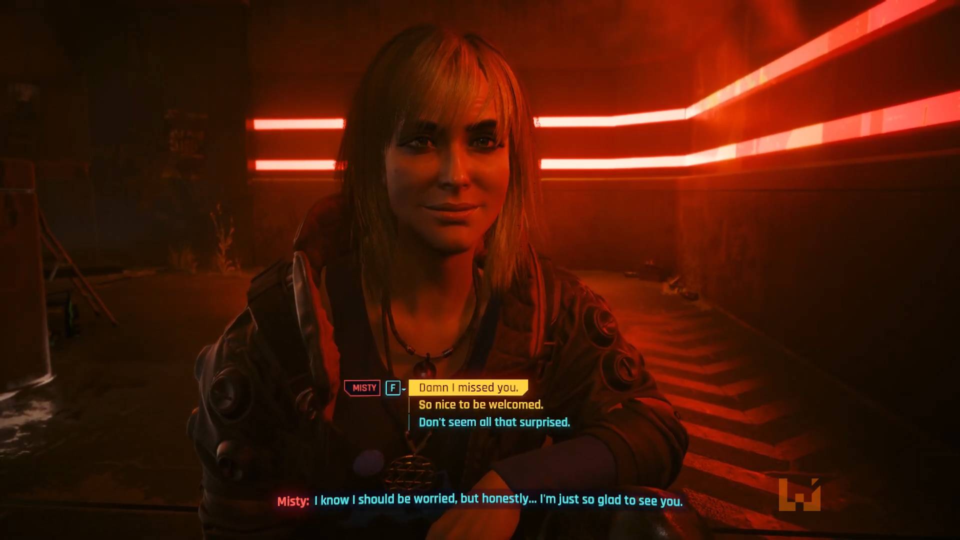 当V离开Viktor的地方时,V被两个小混混袭击。当V清醒过来时,V遇到了Misty。Misty说她也要离开夜之城了,他建议V在被这个城市吞噬前离开这个城市,当然V拒绝了Misty的建议。最后,V目送Misty离开,自己也消失在人海中。