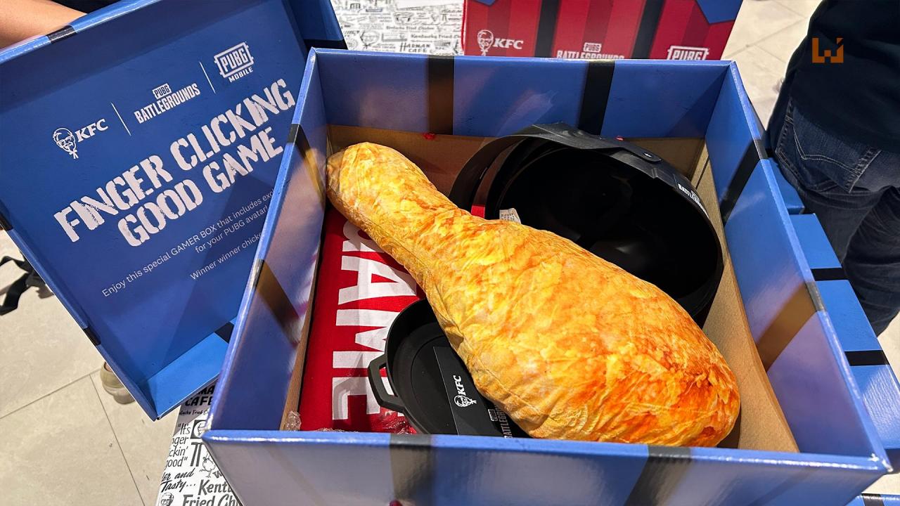 KFC 为了能够更加贴近于玩家群组,决定与人气极高的大逃杀游戏《PUBG Battlegrounds》以及《PUBG Mobile》进行联动,借此触及玩家群组并使 KFC 这个品牌变得更具电竞风味。而在这个联动之中,KFC 将会推出限时套餐 KFC x PUBG Gamer Box,内有饮料、薯条、凉拌卷心菜、汉堡、鸡肉以及 6块鸡肉块。